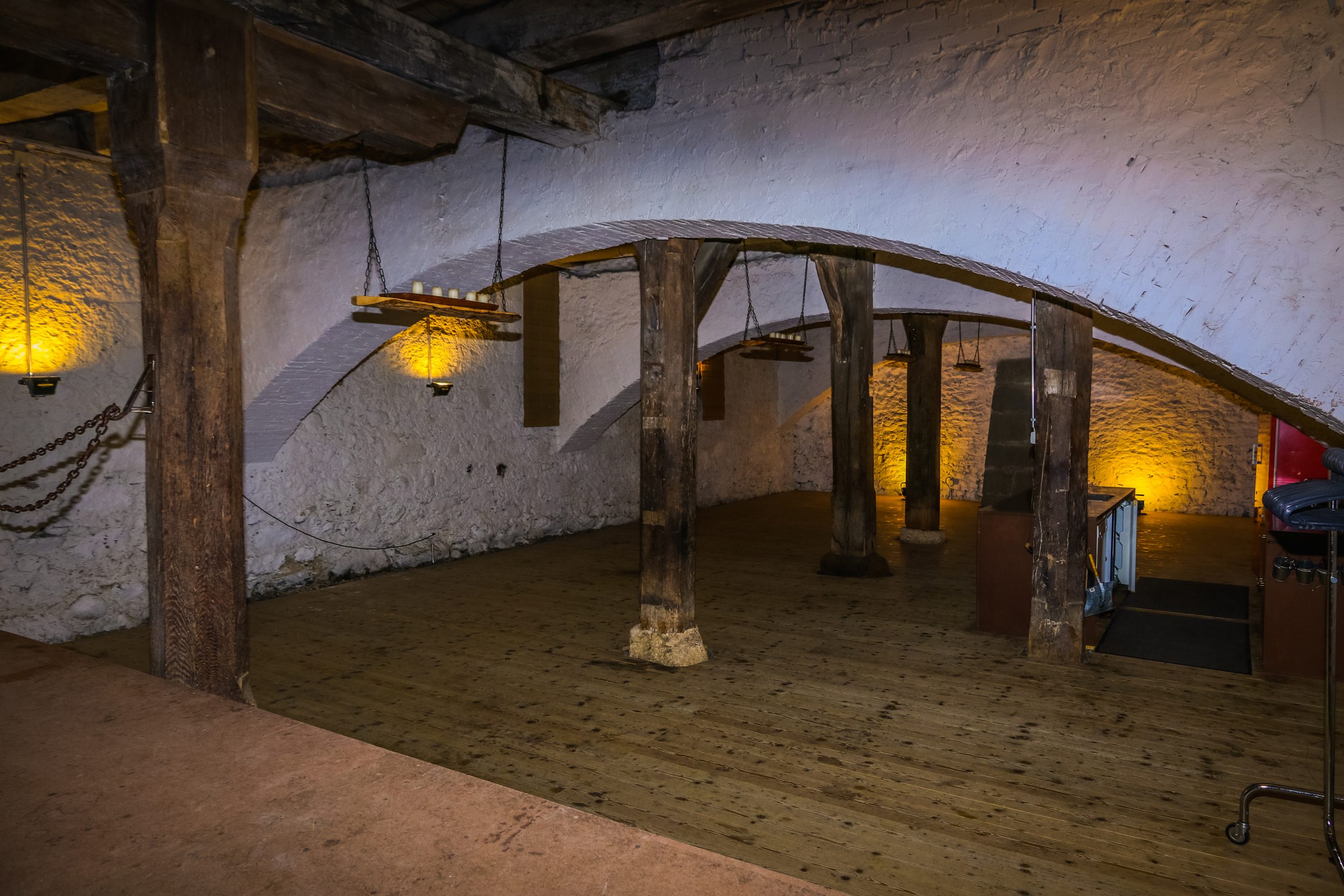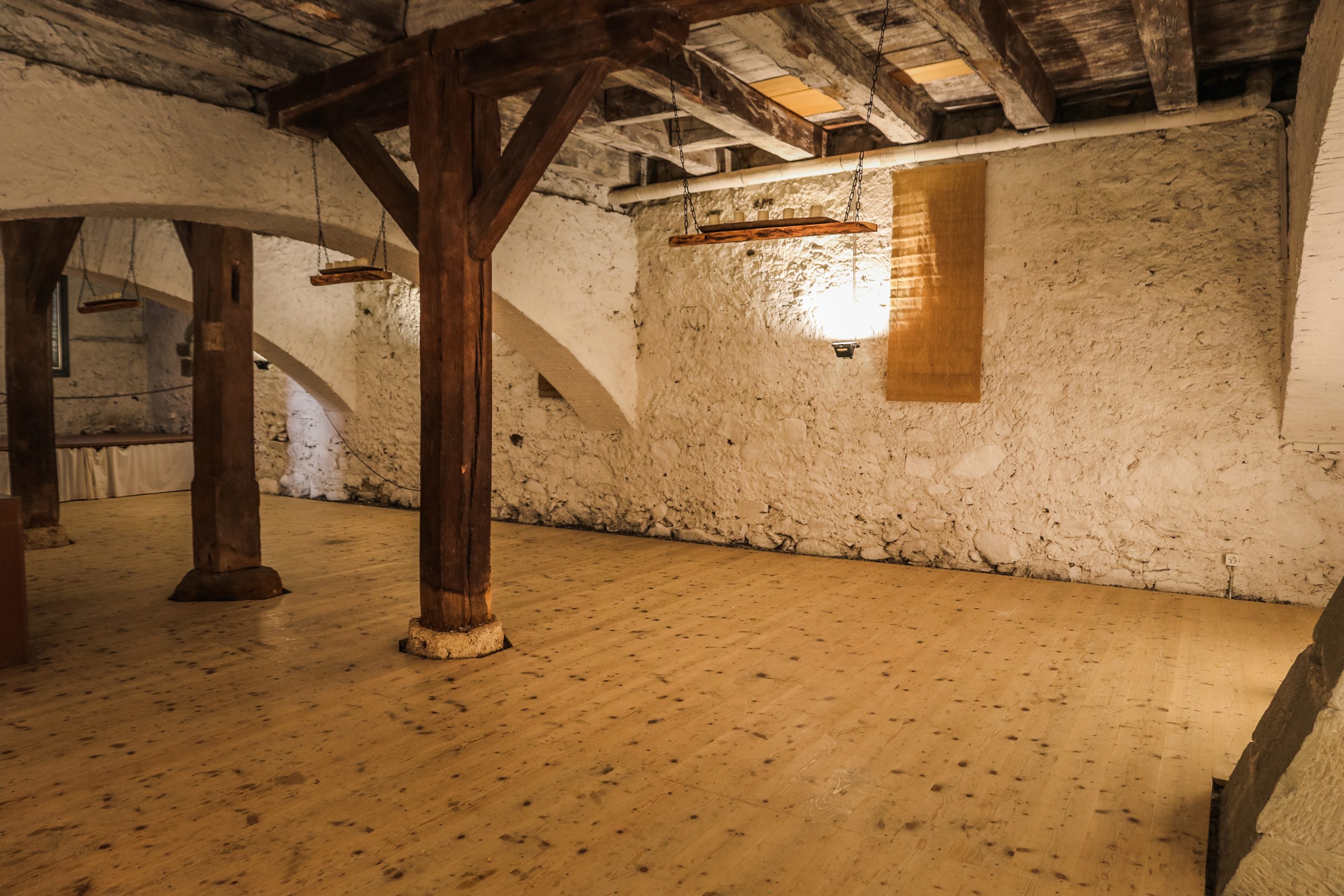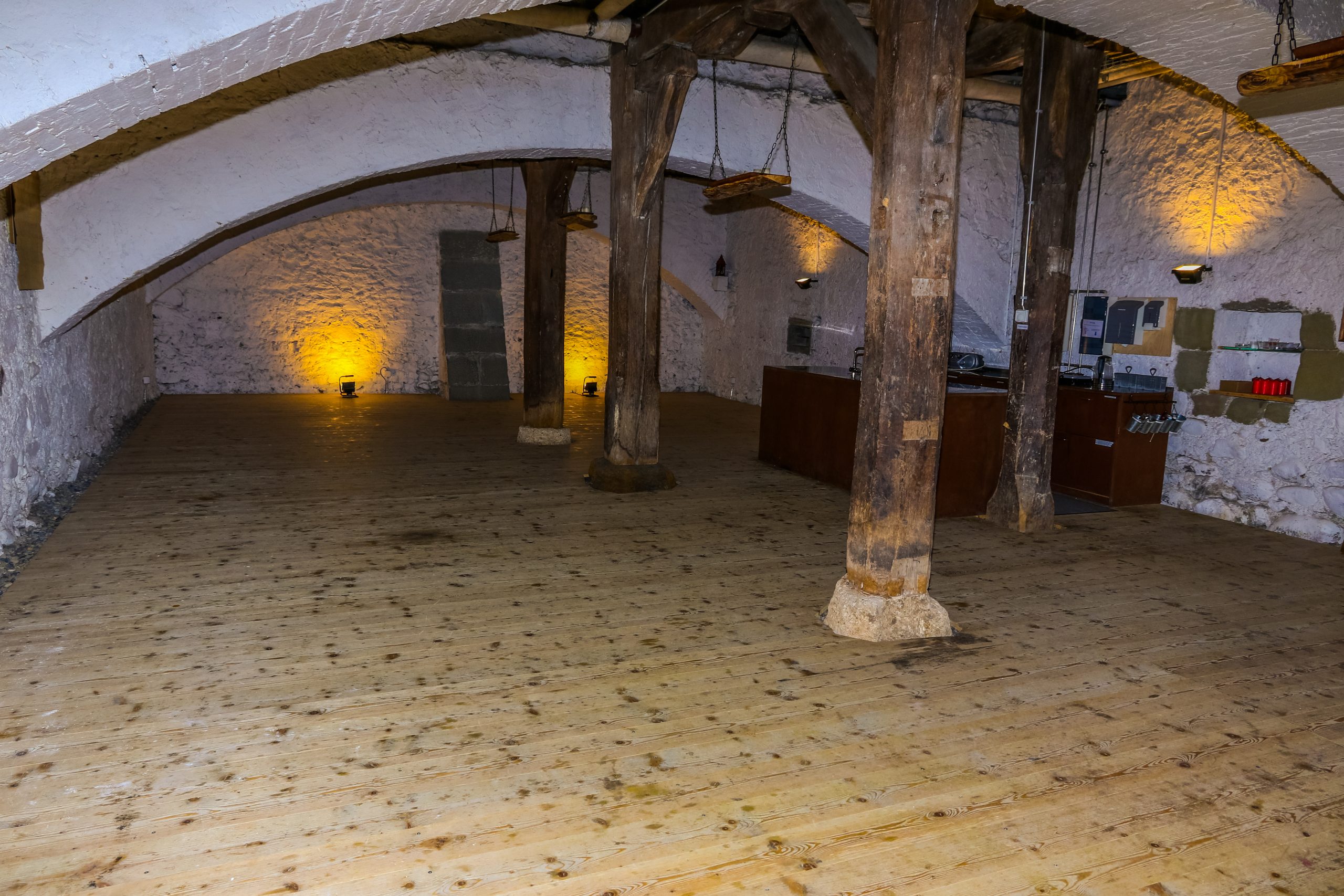 Das mit schönen Deckenbogen und alten Holzsäulen erbaute Lokal aus dem Jahr 1256 bietet Ihnen ein ehrwürdiges und einmaliges Ambiente für kleinere Bankette und Apéros.