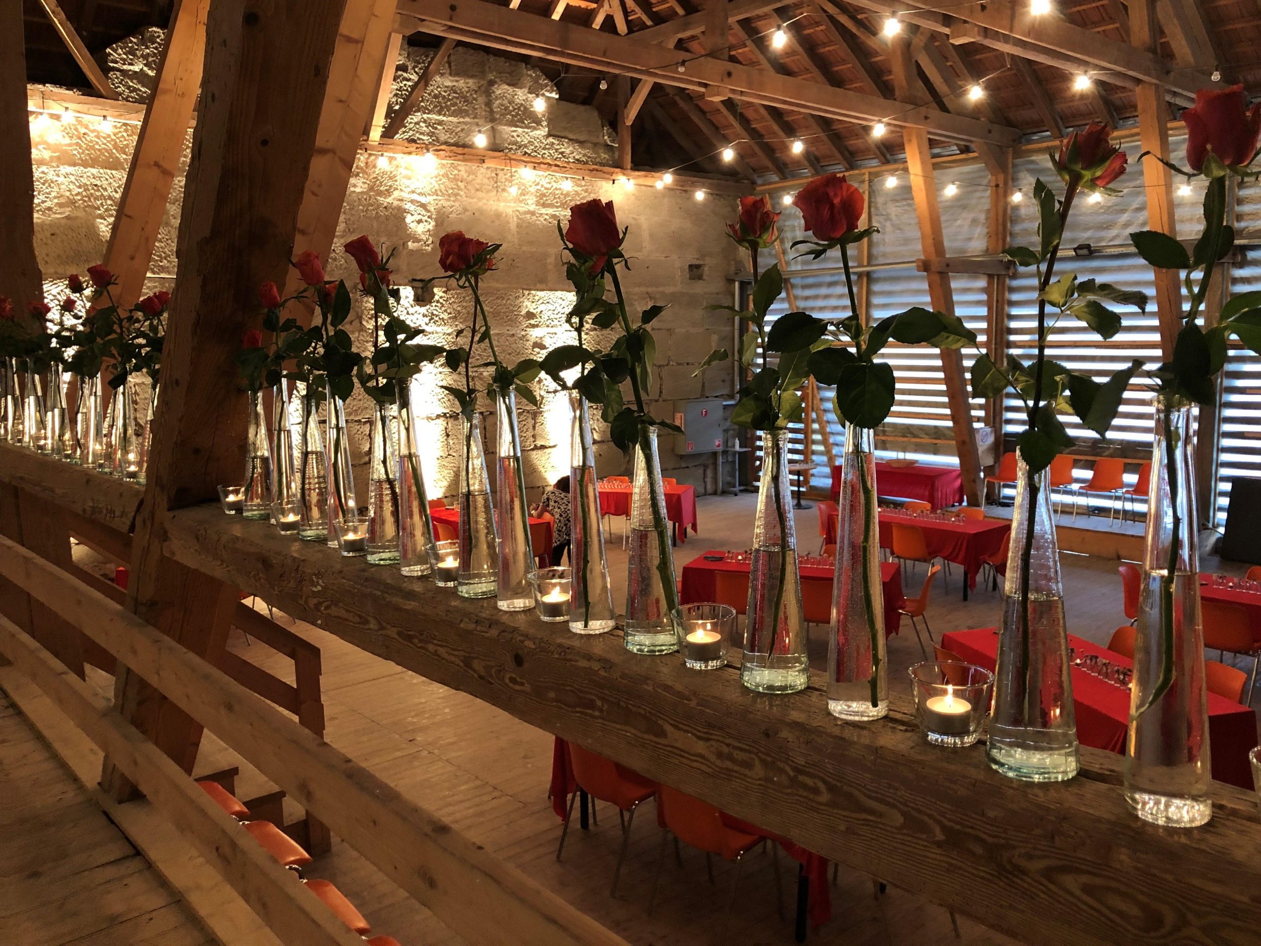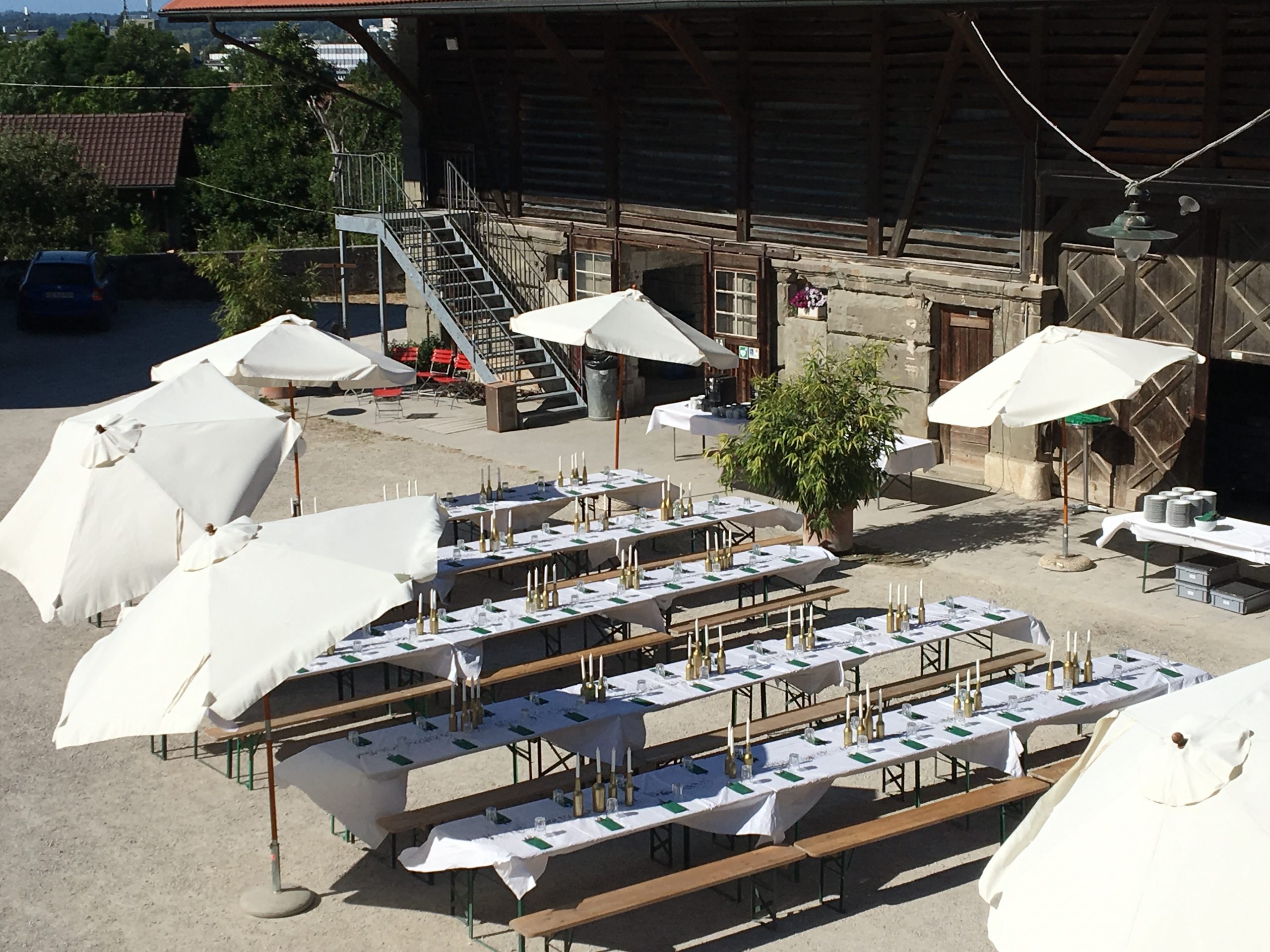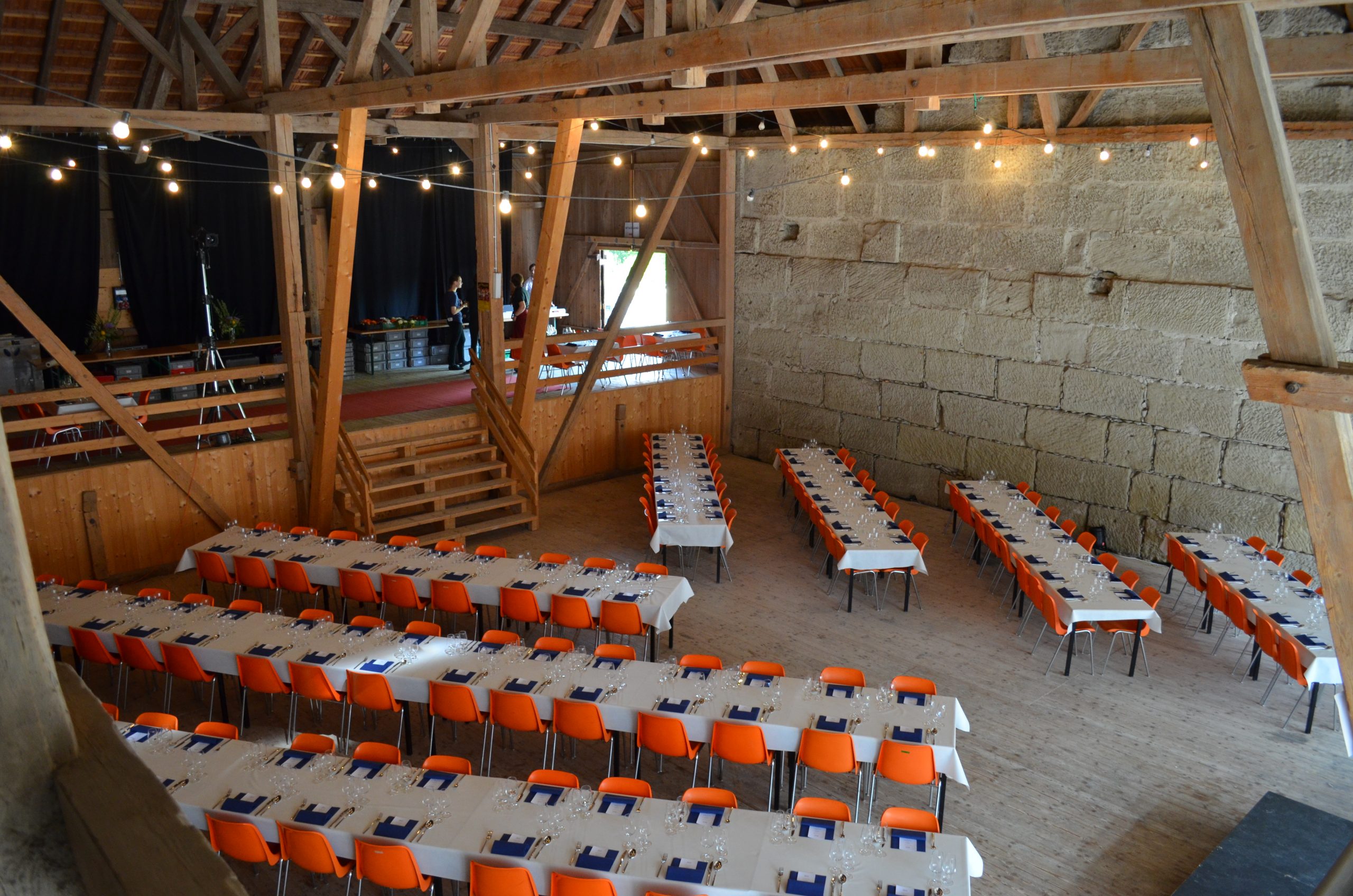 Die Schüür ist ein markantes Gebäude auf dem Kulturhof. Der Saal eignet sich ideal für Anlässe wie Apéros, Firmenevents oder Familienfeste.